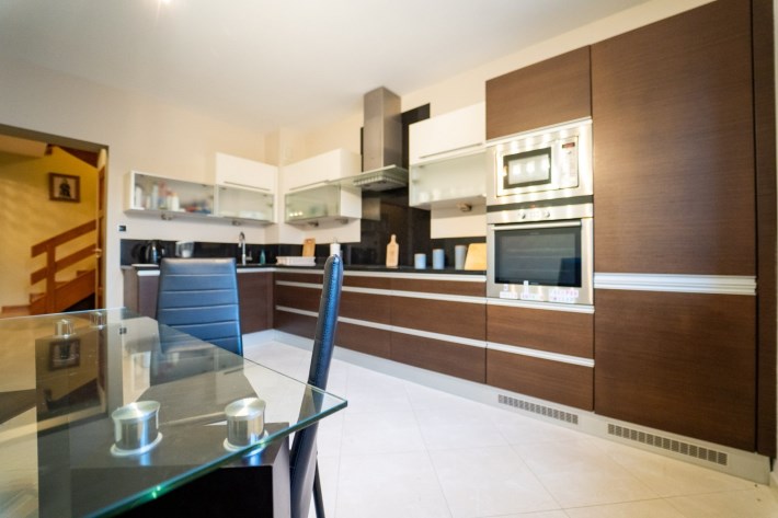 Dom bardzo zadbany wykończony bardzo dobrej jakości materiałami. Na podłogach w pokojach drewniany parkiet, okna plastikowe w dobrym stanie. Dom widny, słoneczny z ekspozycją okien na północny-wchód oraz południowy-zachód. Ogrzewanie ekonomicznym piecem dwufunkcyjny wymienionym 5 lat temu. Do budynku doprowadzenie wszystkie media: prąd, woda, kanalizacja oraz gaz. Cały dom bardzo zadbany, mało użytkowany (spełniał rolę 2 domu na wakacyjne przyjazdy do Polski).