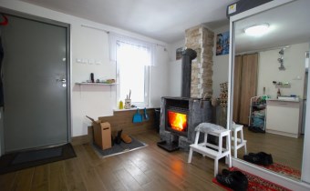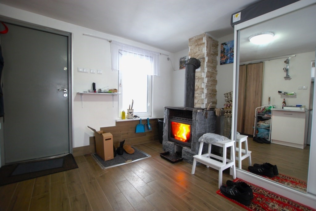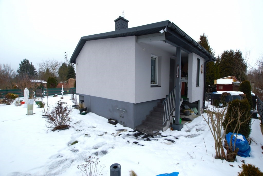 W skład domu wchodzi salon, łazienka z prysznicem, kuchnia oraz schowek na drewno. Budynek wybudowany z pustaka, pokryty blachą, ocieplany styropianem 10 cm oraz wełną mineralną. Ogrzewanie z kominka, ciepła woda z bojlera elektrycznego. Okna plastikowe. Ciepła woda ze studni głębinowej. Około 5 lat temu wykonano generalny remont, który objął m. in. wymianę instalacji.