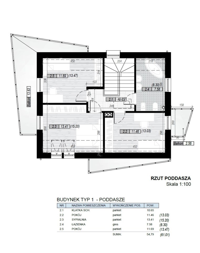 - klatka schodowa o pow. 10,65 m2,