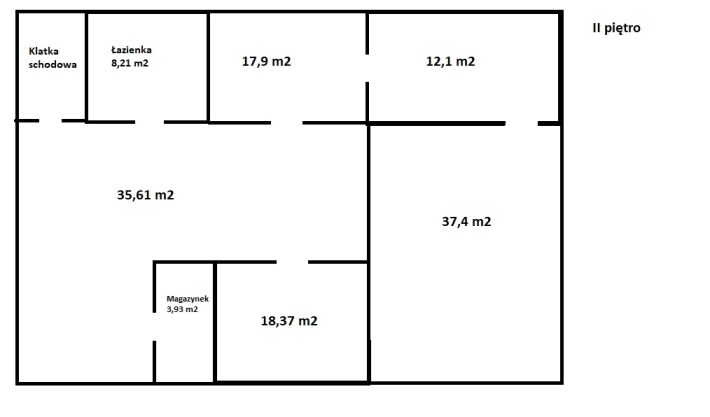 II piętro (łączna powierzchnia około 133,66 m2) - 4 pokoje, 2 łazienki oraz schowek.