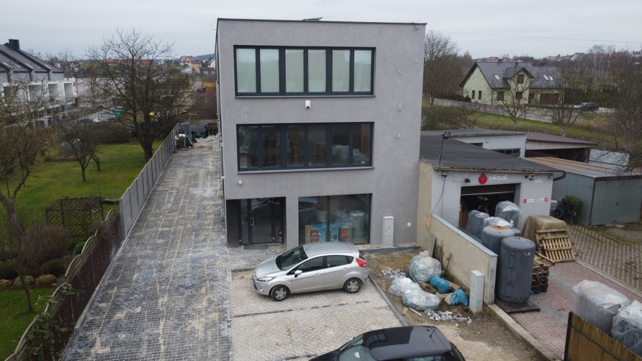 Budynek wykończony z wysokiej jakości materiałów, zaprojektowany z dbałością o każdy detal nadający się na każdy rodzaj działalności. Dwa wejścia do budynku zapewniają możliwość podziału powierzchni dla paru firm. Przed budynkiem duży parking dla klientów oraz pracowników.