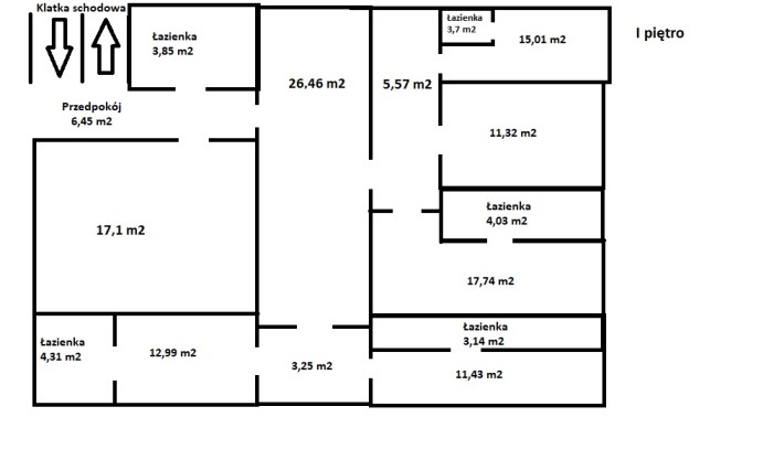 Wynajmowana powierzchnia składa się łącznie z 11 pomieszczeń (o powierzchni od około 11,32 m2 do około 27,65 m2) oraz 7 łazienek: