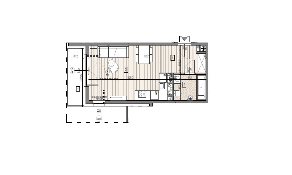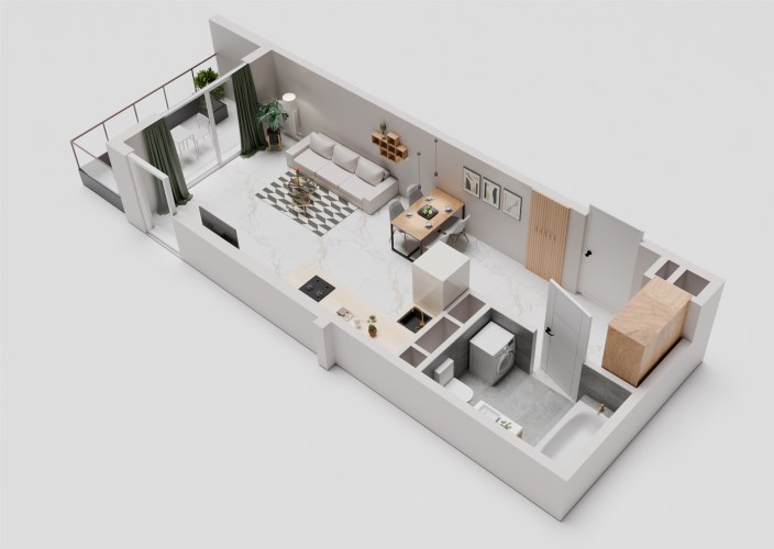salon z aneksem kuchennym –22,87 m²