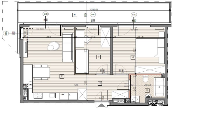 salon z aneksem kuchennym –23,14 m²