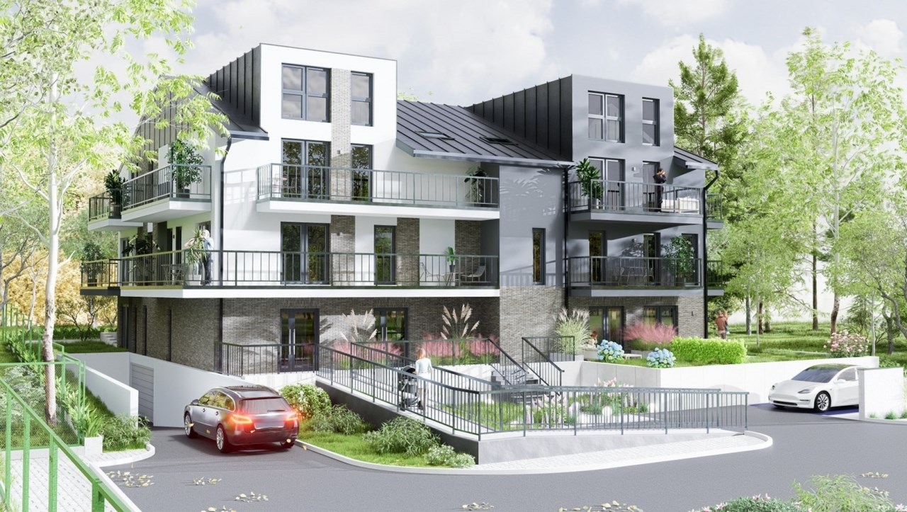 Budynek zlokalizowany w zielonej spokojnej okolicy jednocześnie w niedalekiej odległości do licznych punktów usługowych większych sklepów spożywczych typu Biedronka, Stokrotka, Lidl oraz punktów usługowych.