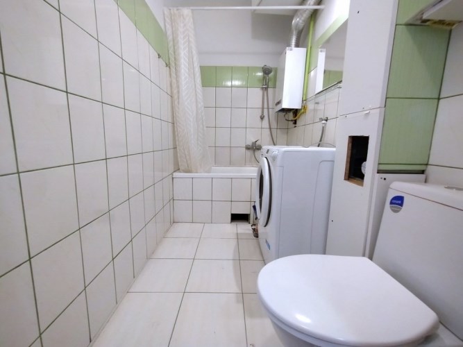 Ogrzewanie z sieci miejskiej, ciepła woda z piecyka gazowego.
